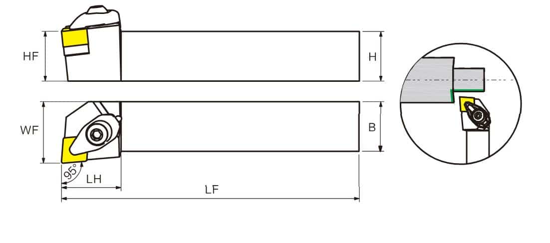 Unser Wendeplattenhalter DCLNR/L eignet sich ideal für verschiedene Zerspanungsanwendungen, darunter das Drehen von Stahl, Edelstahl, Aluminium und anderen Werkstoffen. Von der Hochpräzisionsfertigung bis hin zur Serienproduktion – dieser Halter bietet die Leistung und Zuverlässigkeit, die Sie benötigen.